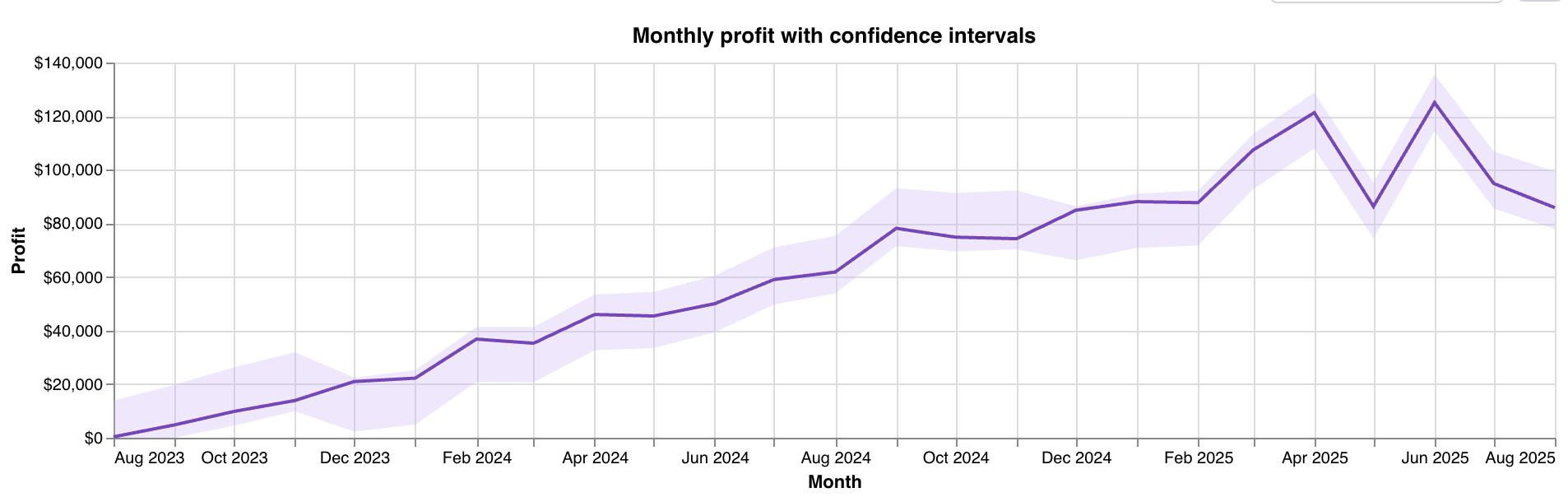 Trellis Area charts (also called small multiples or faceted area charts) are used to compare trends across multiple categories over time, with each category shown in its own mini chart. They’re perfect for spotting patterns, outliers, or seasonality within individual segments, like: product lines, user groups, or marketing channels, without crowding everything into a single chart. Trellis Area charts are especially helpful when you want to emphasize the shape of trends rather than exact values. The code below will give you a trellis area chart like this: Custom trellis area chart