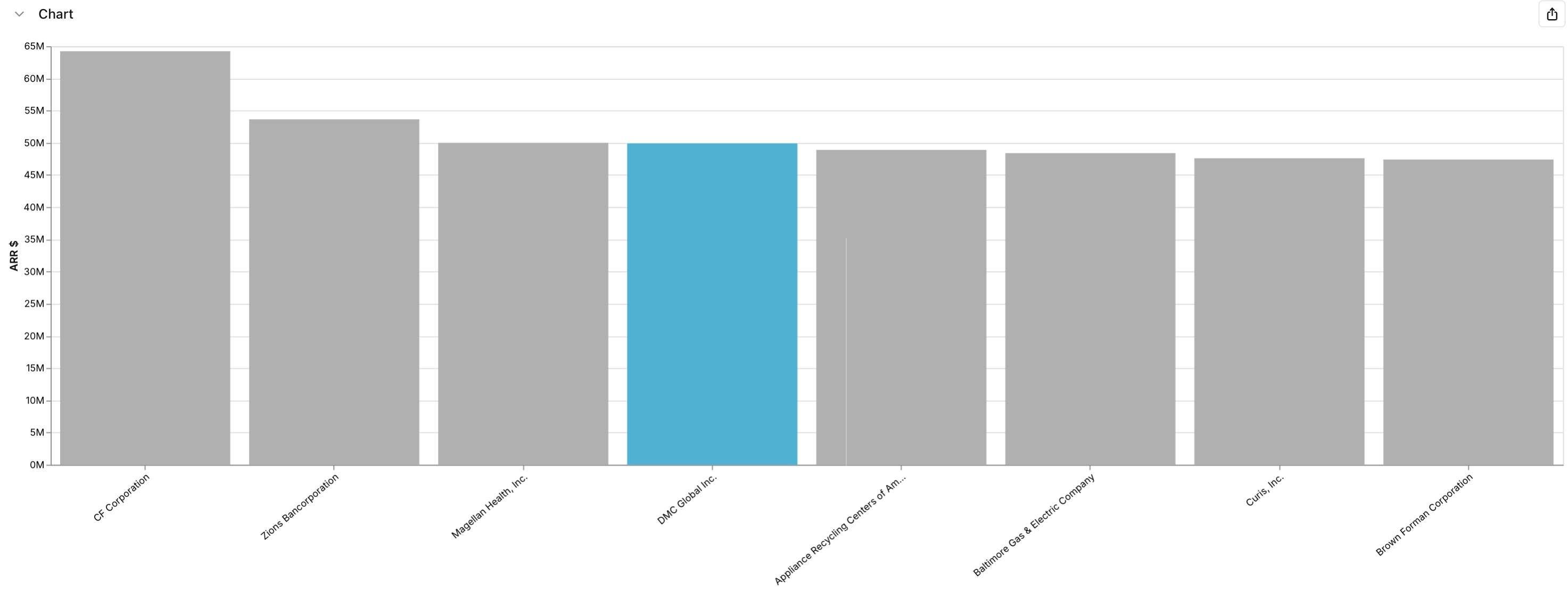 Highlighted bar charts compare a single metric across categories, with one bar visually emphasized to call out a specific item of interest, like a key account or product. This chart works best with a categorical dimension on the x-axis, a numeric metric on the y-axis, and a color condition to highlight the bar you want to focus on. The code below will give you a highlighted bar chart like this: