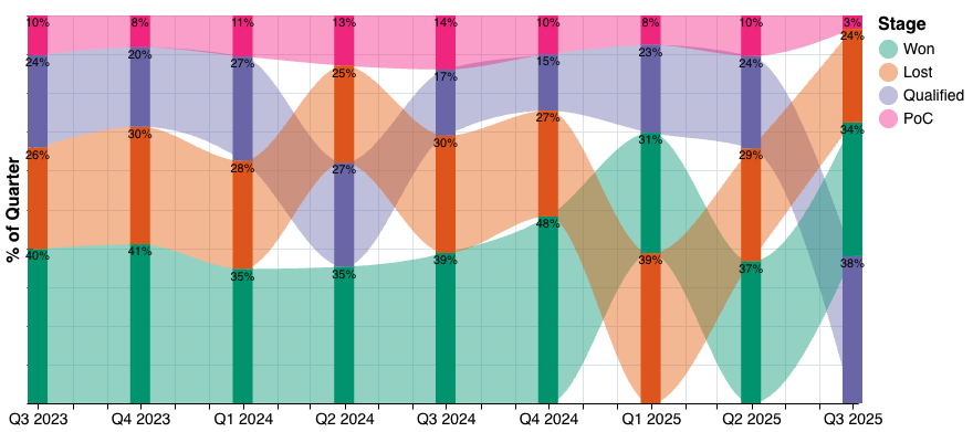 Use this chart when you want to show how parts of a whole change across categories or time and you want to visualize how individual segments flow from one stage to the next. It’s perfect for things like user cohorts, funnel stages, or survey responses over time. Any scenario where it’s helpful to track how groups move or shift between steps.